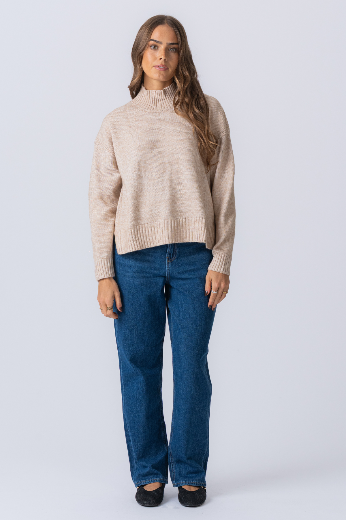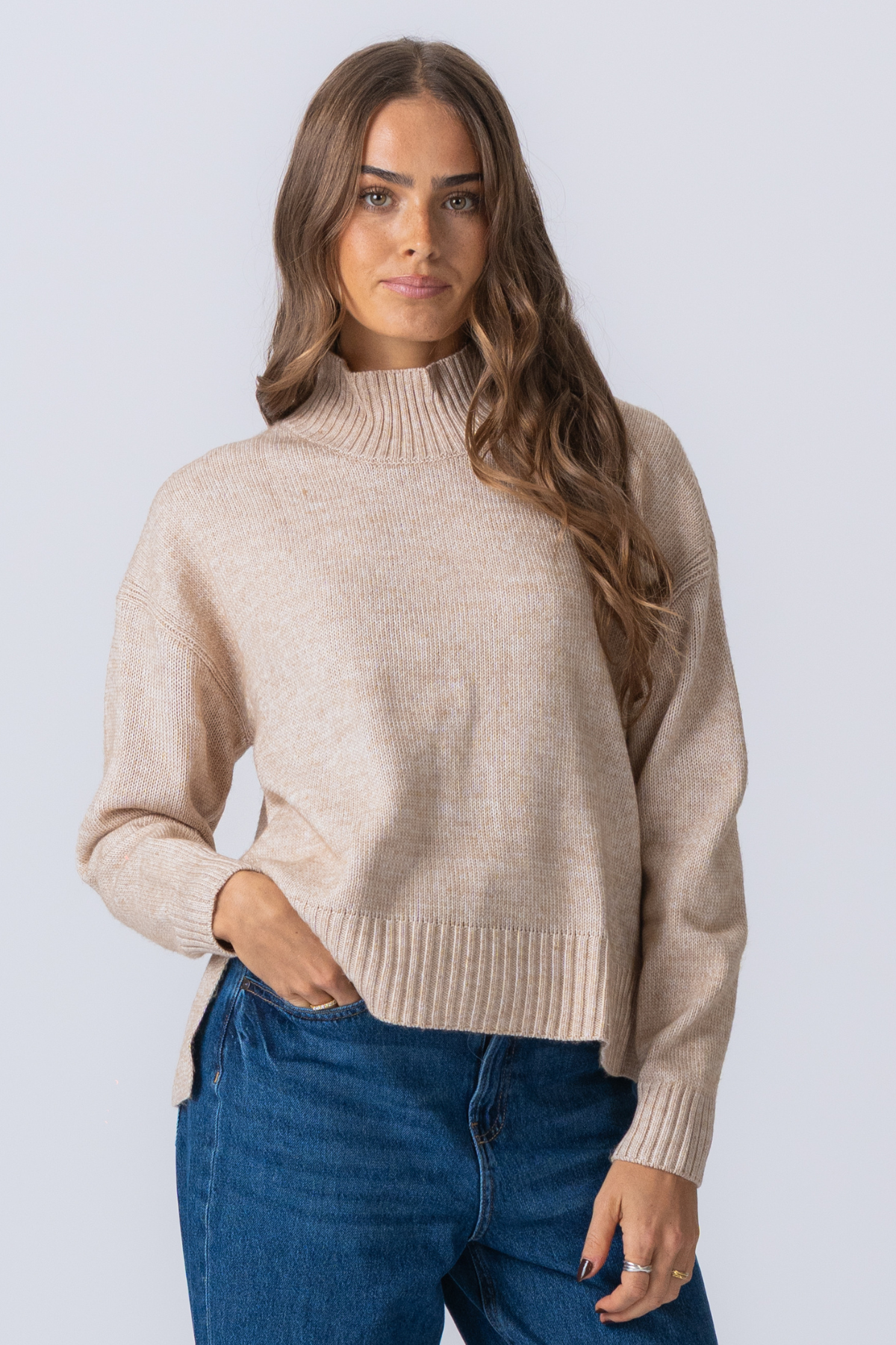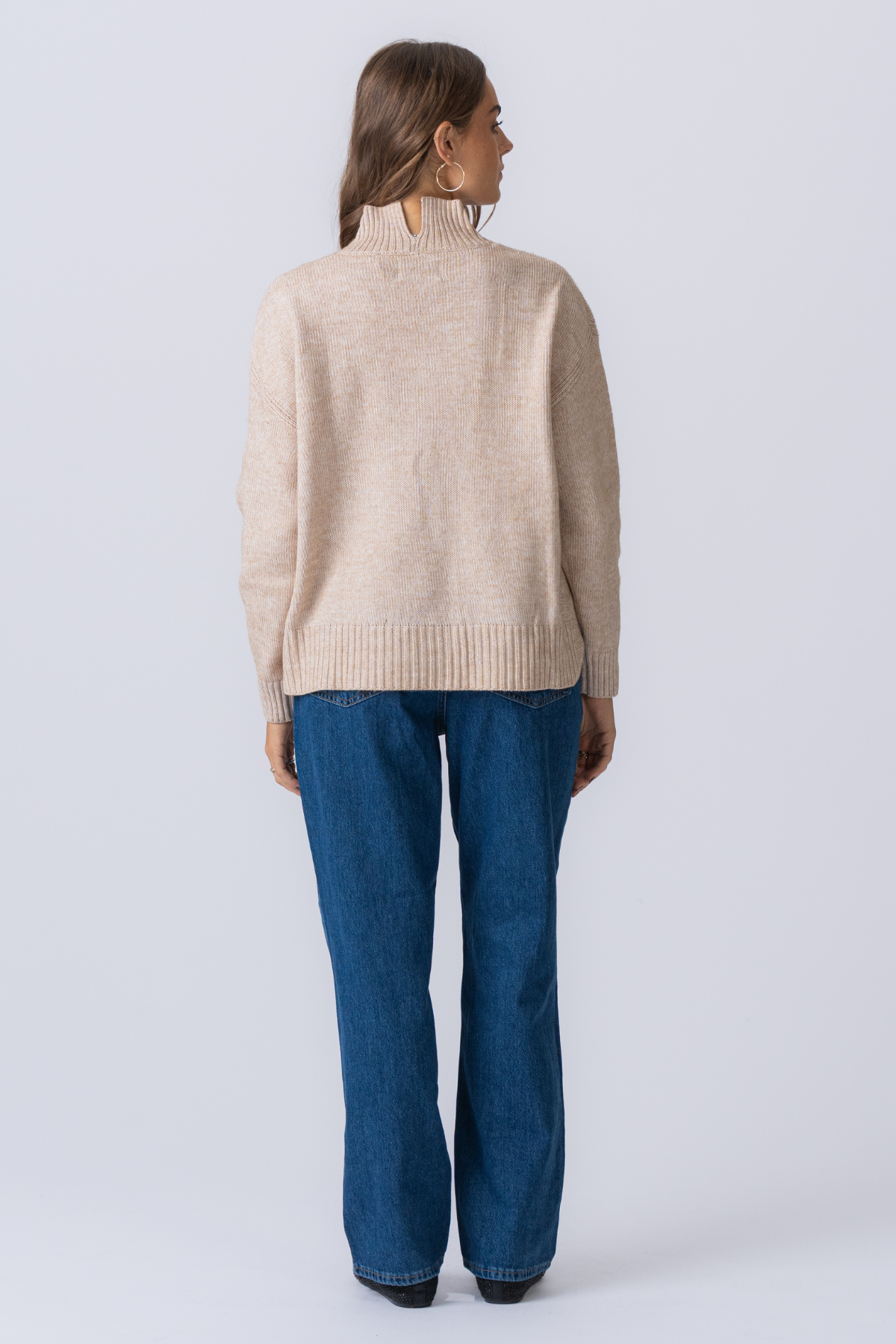 Υπερμεγέθη πλεκτό πόλο -λαιμό jumper - μπεζ