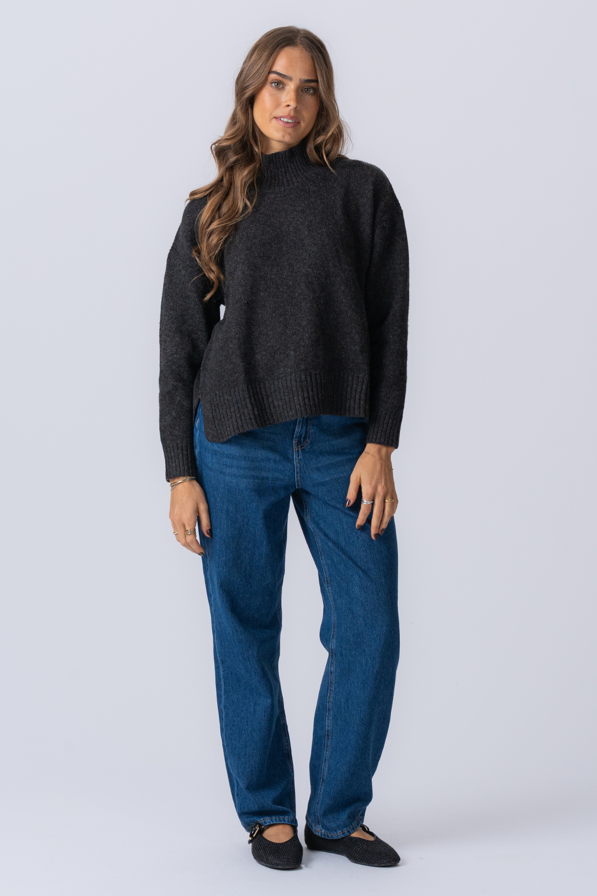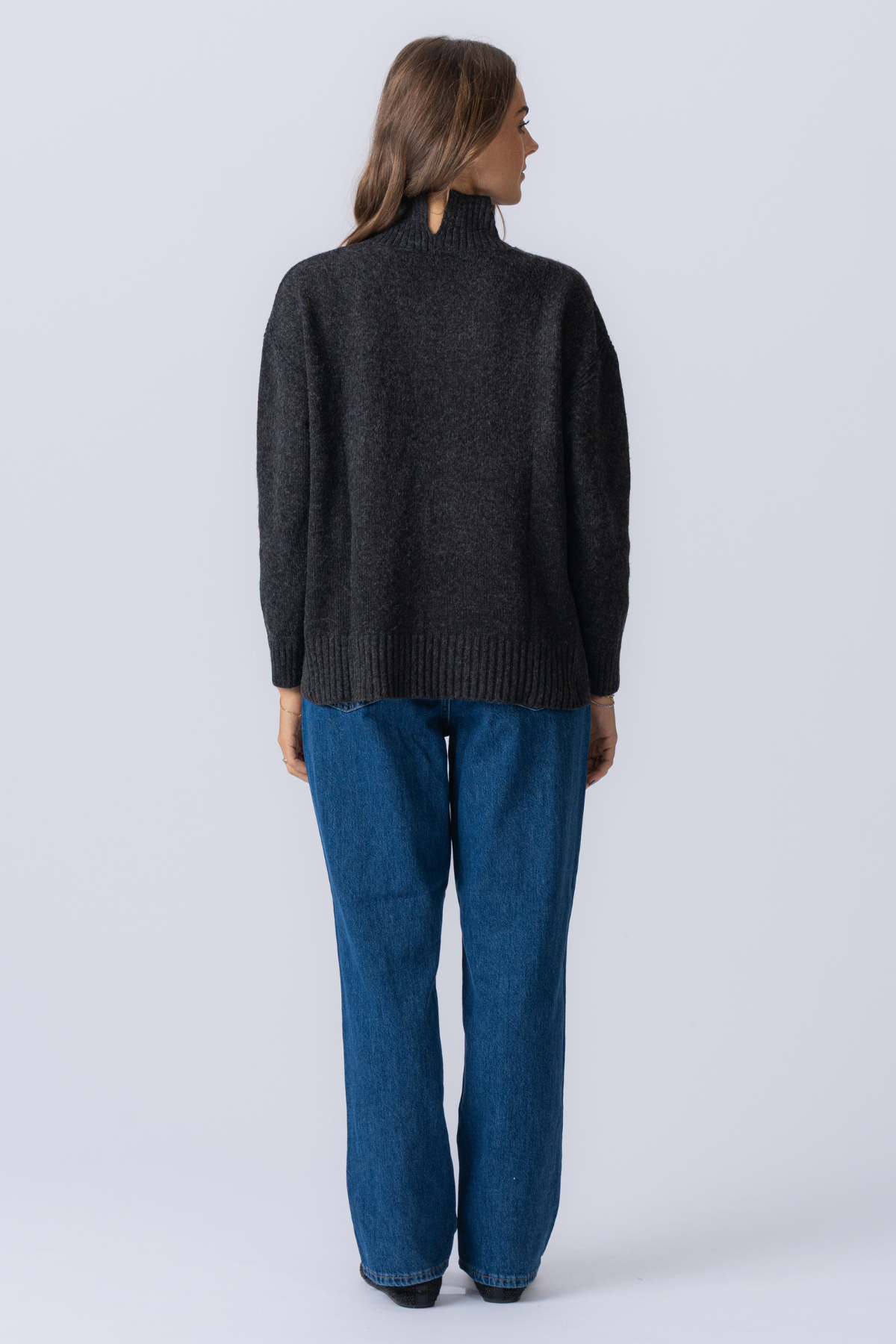 Υπερμεγέθη πλεκτό πόλο -λαιμό jumper - σκούρο γκρι melange