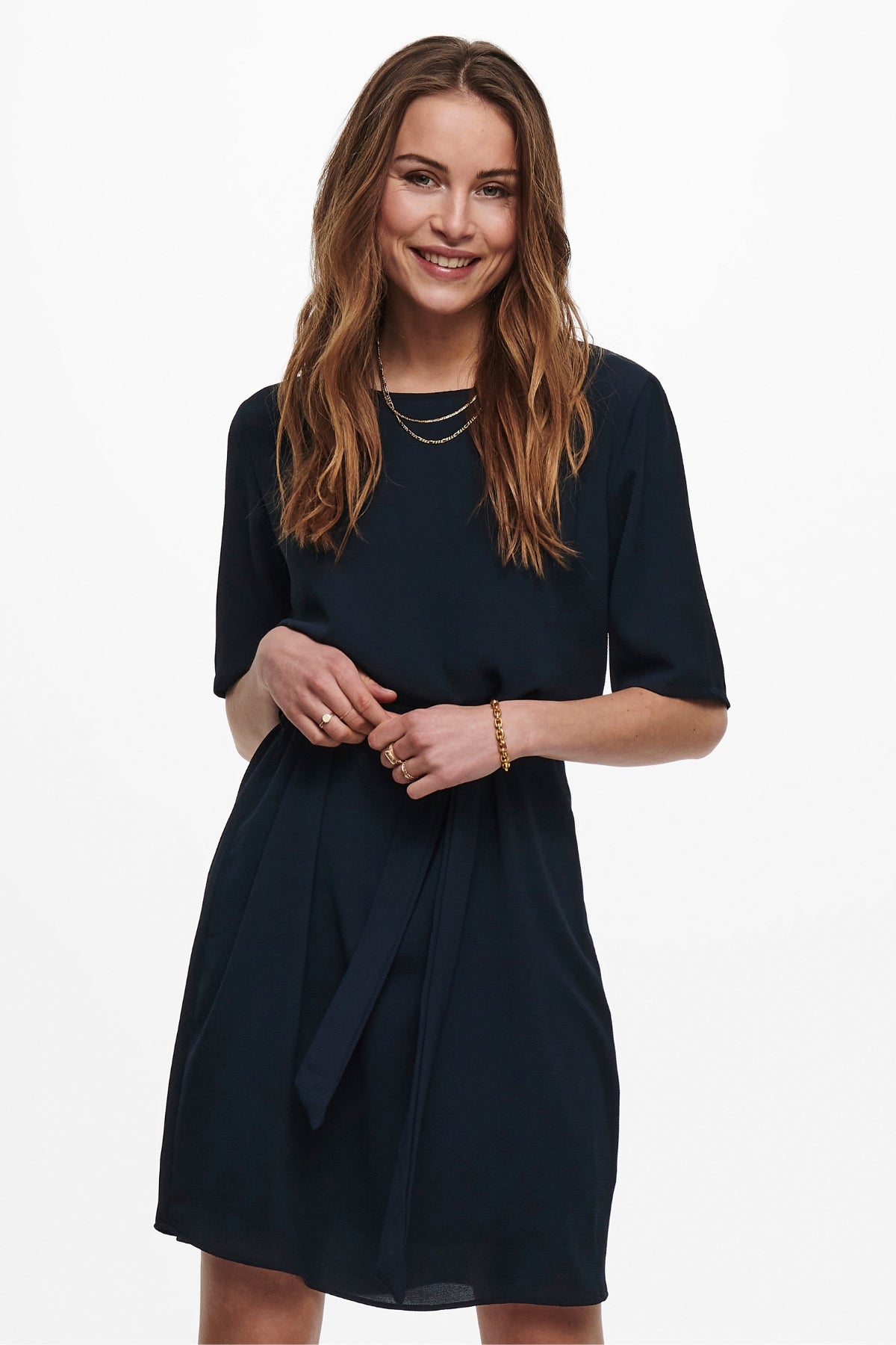 Add this essential navy belt dress to your collection and discover the ease of effortless style.