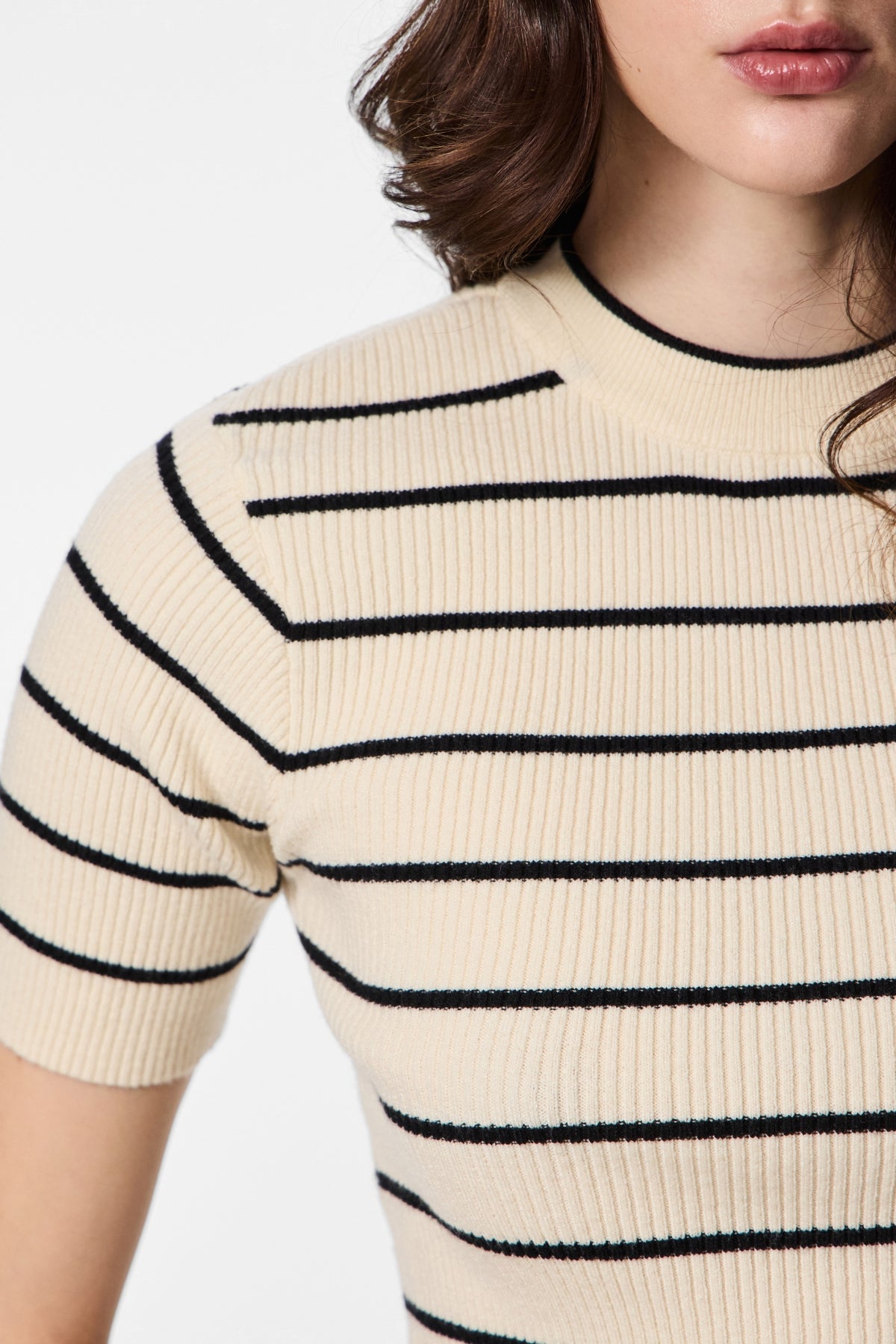 The beauty of this beige and black knit lies in its adaptability. The classic O-neck design frames the face beautifully, while the relaxed fit allows for easy layering. For a professional ensemble that transitions seamlessly from desk to dinner, pair this top with tailored Pants and ankle boots. If you prefer a more casual aesthetic, it styles perfectly with your favorite denim and sneakers. The neutral color palette ensures it integrates smoothly with your existing wardrobe favorites.