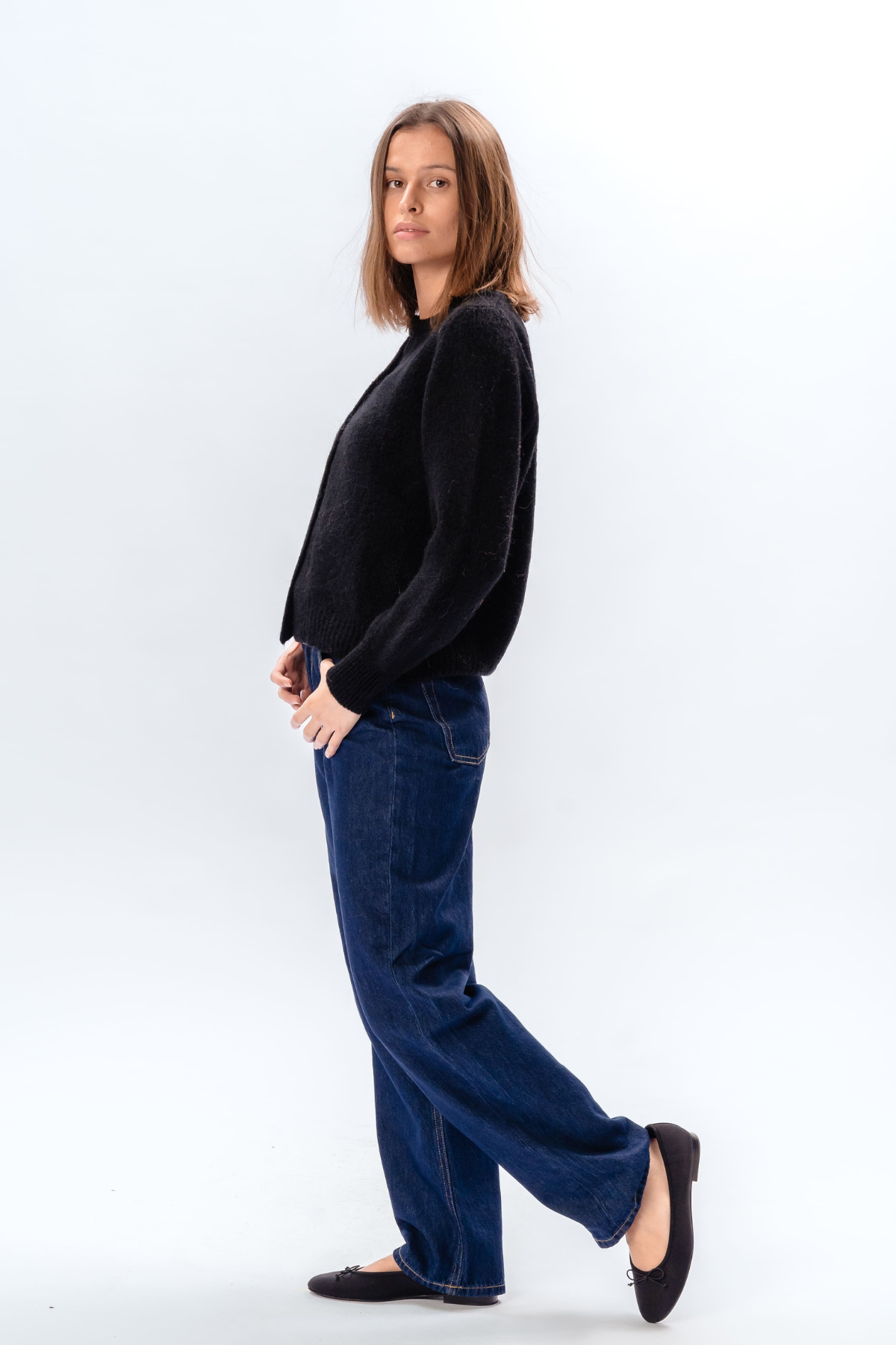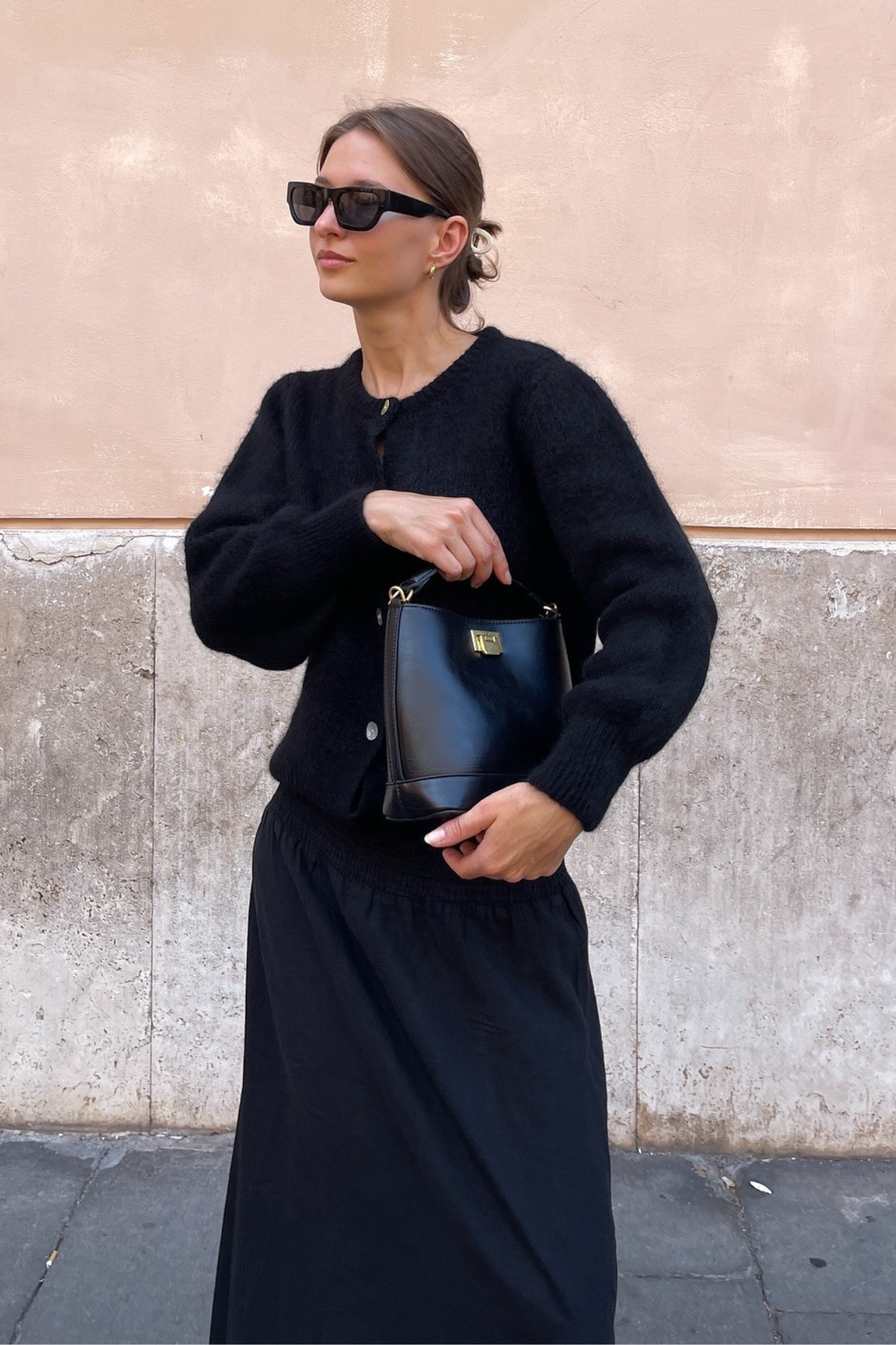 Step into timeless elegance with the Anna Cardigan in classic black, a versatile piece from TeeShoppen's exclusive range for women. This cardigan is the embodiment of style and comfort, intricately designed to complement any wardrobe. With its flowing silhouette, the Anna Cardigan drapes beautifully, offering both warmth and chic appeal. Perfect for layering, it effortlessly transitions from a cool autumn day to a brisk winter night. The fabric blend ensures a cozy feel, made with 44% Acrylic, 26% Polyamide, 20% Kid Mohair, and 10% Wool, creating a soft and indulgent touch against the skin. Whether you're headed to the office or a casual weekend outing, this cardigan is the essential fashion-forward piece that elevates every look. Pair it with your favorite jeans for a laid-back vibe or over a dress for a more refined ensemble. Embrace the elegance and simplicity of the Anna Cardigan – where comfort meets style.