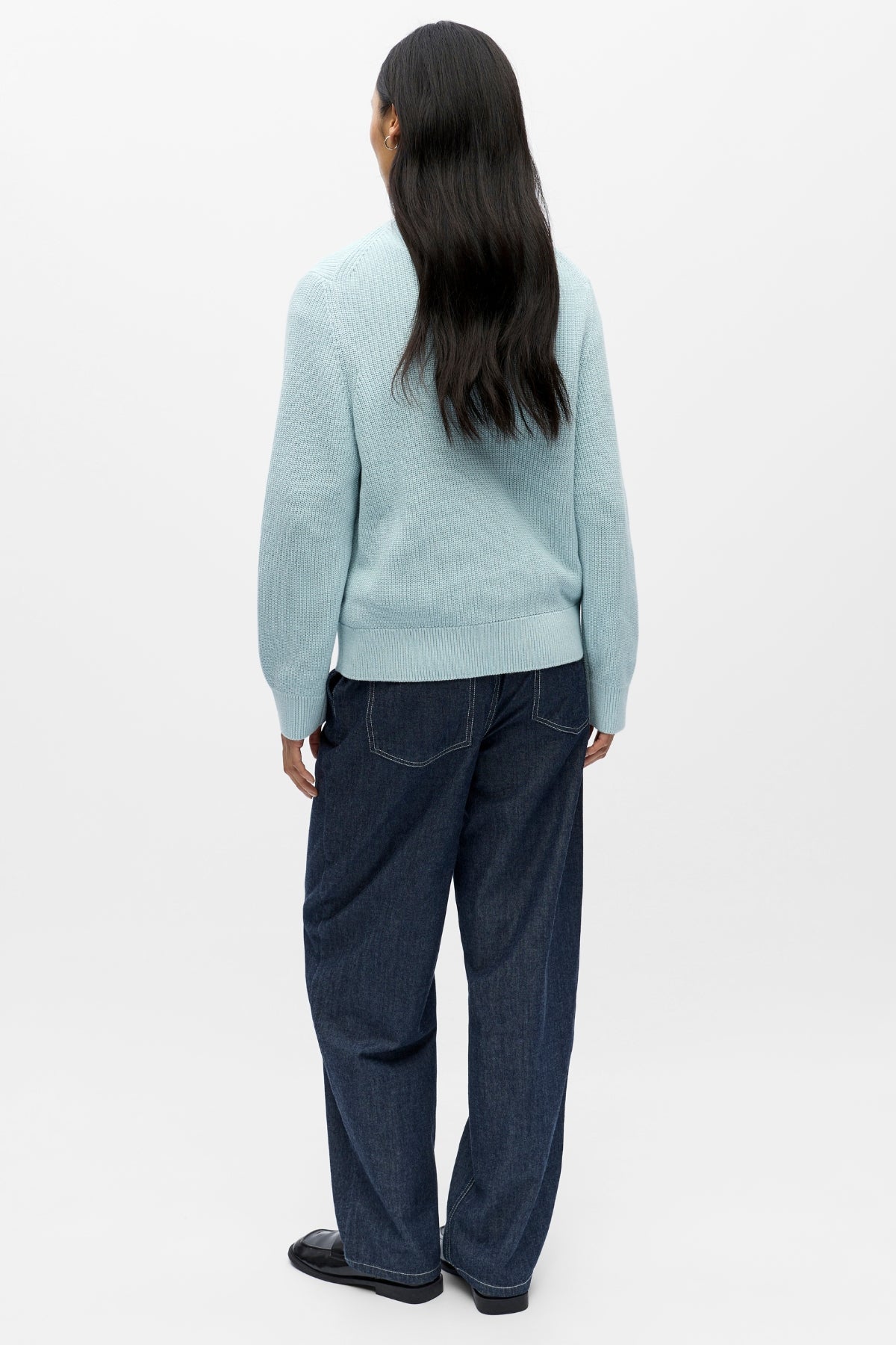 Το διαχρονικό σχέδιο και το γαλήνιο χρώμα Winter Sky κάνουν αυτό το πουλόβερ έναν πραγματικό ήρωα της γκαρνταρόμπας. Η ομορφιά του βρίσκεται στην απλότητα και την προσαρμοστικότητά του. Είτε επιμελείτε μια εμφάνιση για μια πολυάσχολη εργάσιμη μέρα είτε για ένα χαλαρό Σαββατοκύριακο, το πουλόβερ Flo Knit μεταβαίνει απρόσκοπτα. Για ένα γυαλιστερό σύνολο, έτοιμο για γραφείο, συνδυάστε το με κλασικό tailored Pants και loafers. Δημιουργήστε μια κομψή off-duty εμφάνιση φορώντας το με τα αγαπημένα σας τζιν και μποτάκια ή απλώστε το πάνω από ένα slip φόρεμα για μια βραδινή έξοδο. Η ευελιξία του περιορίζεται μόνο από τη φαντασία σας.