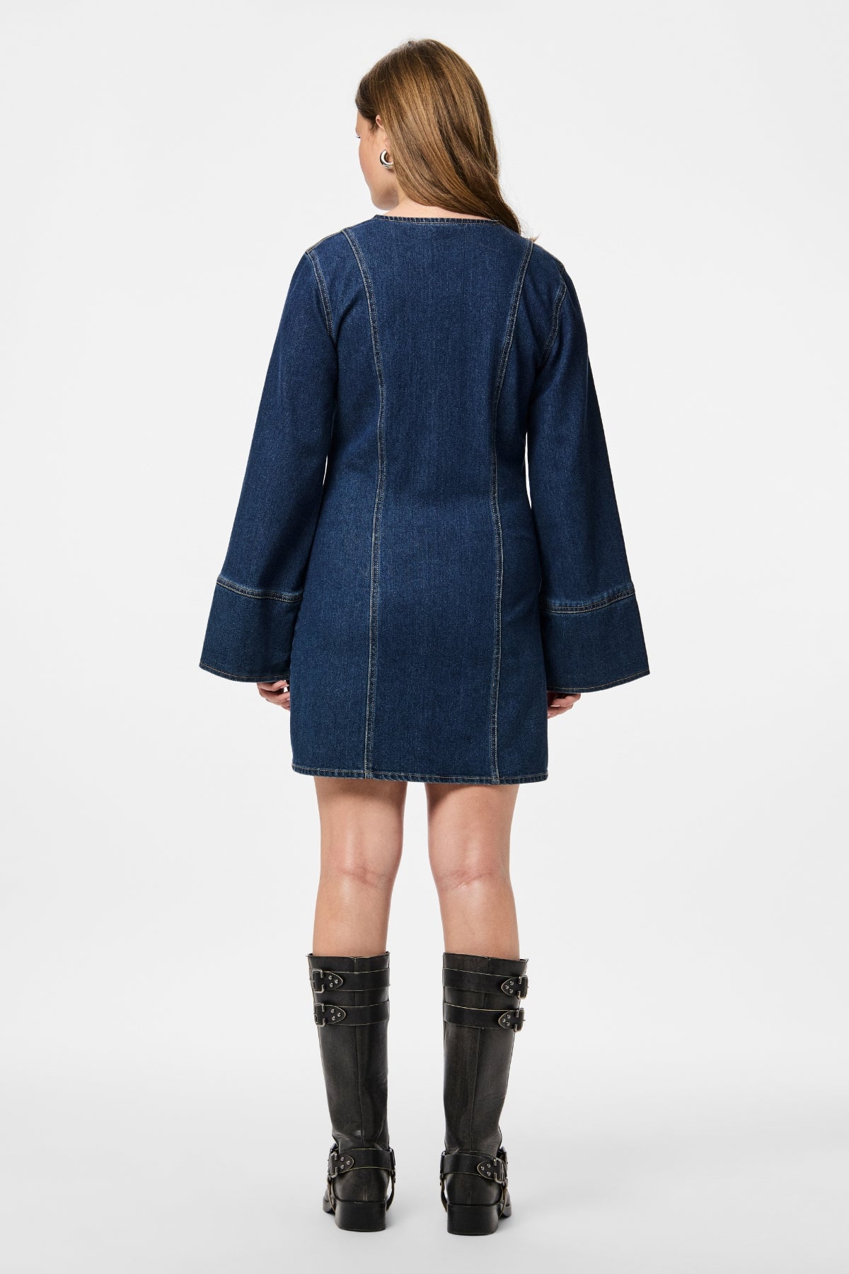 Αναβαθμίστε την καθημερινή σας περιστροφή με το εξαιρετικό τζιν Flora φόρεμα σε σκούρο μπλε τζιν της PIECES. Αυτή η βασική γκαρνταρόμπα εξισορροπεί τέλεια τη στιβαρή γοητεία του κλασικού τζιν με μια θηλυκή σιλουέτα προσαρμοσμένη στη σύγχρονη γυναίκα. Είτε κάνεις δουλειές είτε απολαμβάνεις μια βραδινή έξοδο, αυτό το φόρεμα υπόσχεται να δείχνεις κομψή και να νιώθεις αυτοπεποίθηση.